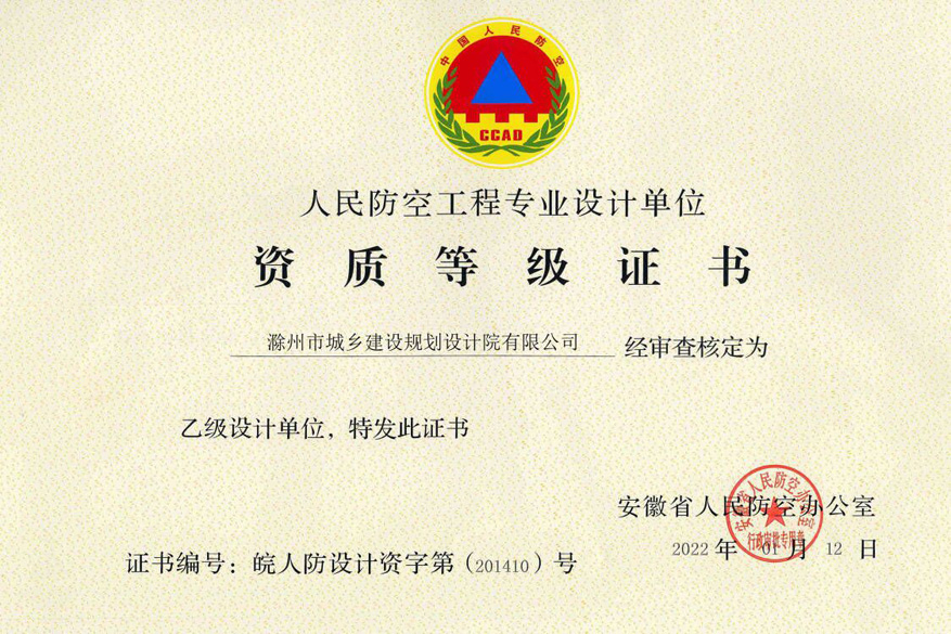 人防設(shè)計(jì)資質(zhì)證書
